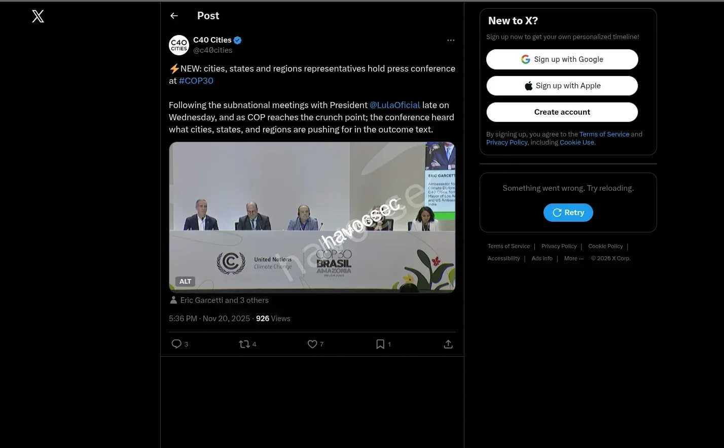 so lets start we are asked"The United Nations Climate Change Conference, COP30, took place in Belém, Brazil this year.What’s the first name of the person who asked the first audience question in the pictured session?"